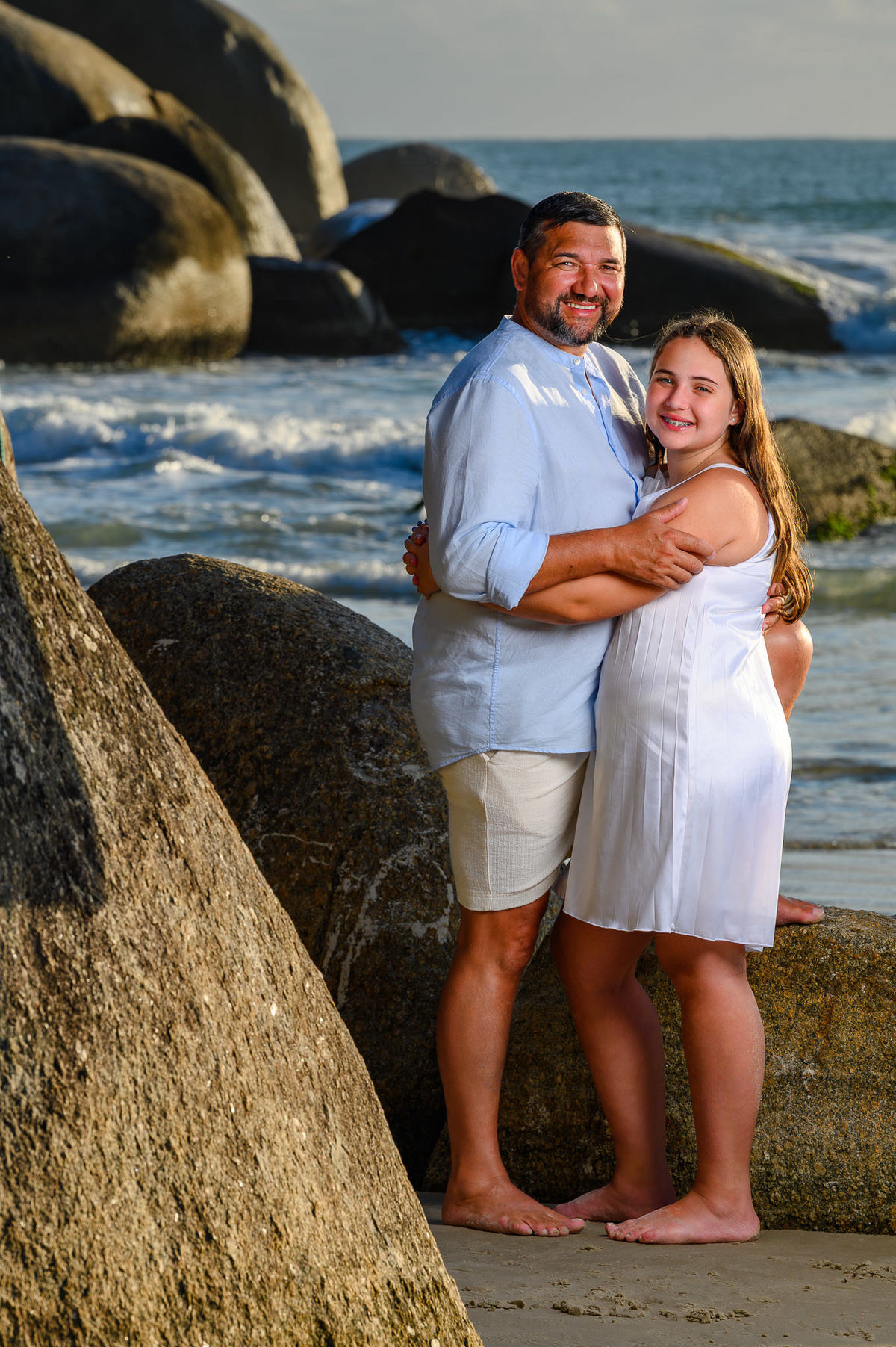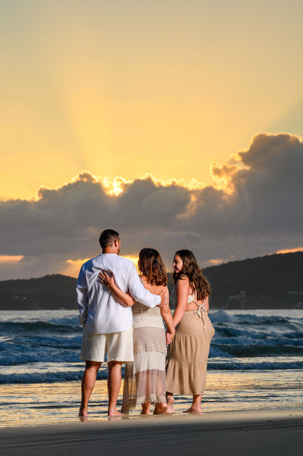 Bombinhas é um dos destinos mais procurados do litoral catarinense para ensaios justamente por oferecer praias com visual limpo, natureza preservada e uma luz incrível no amanhecer e no final de tarde. Para famílias que vêm passar férias na região, o ensaio acaba sendo uma forma de levar um pedacinho dessa experiência para casa, em forma de fotografia.